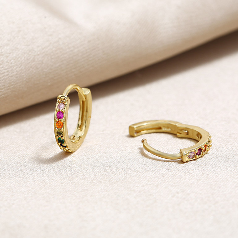 Easy-to-wear circles of light: introducing our bestselling Mini Halo Hoops. Set with a rainbow of multi-color cubic zirconia. These vibrant rainbow huggie hoops sit close to the ear for an easy-going yet luxurious look. Wear either in the lobe or in upper ear piercings for a light-reflecting statement, with a strong pavé setting and a secure fastening to ensure comfort.