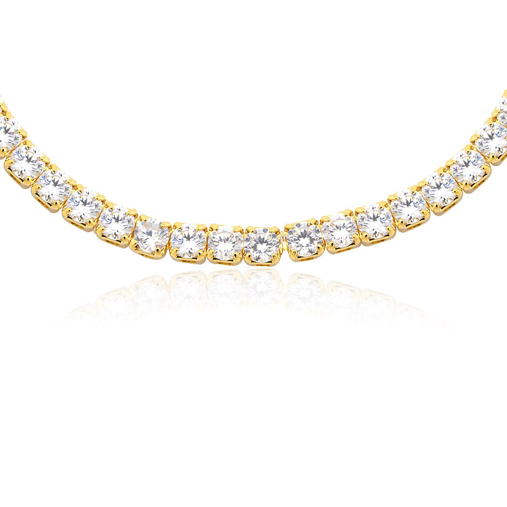 - A matching gold tennis necklace with clear cubic zirconia gemstones, showcasing the collection's sparkle.