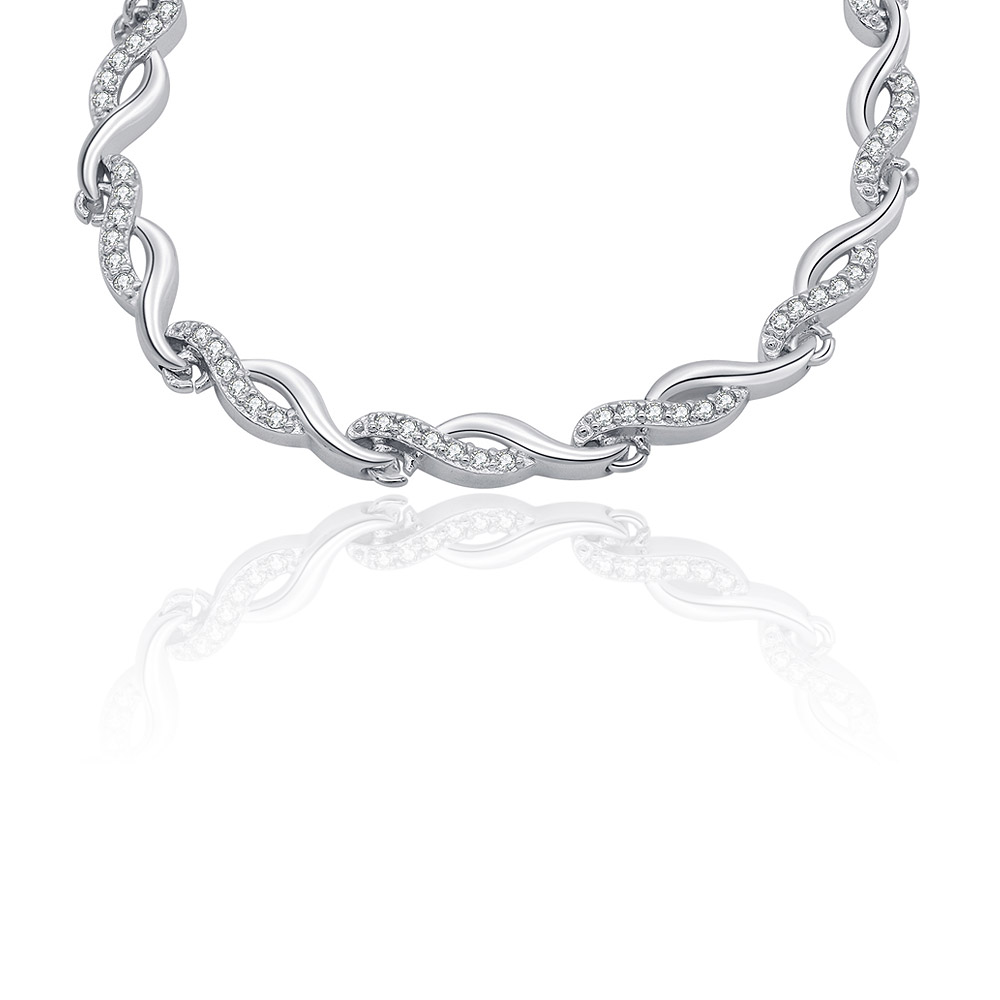 A detailed view of the CZ Wave Link Bracelet, highlighting its unique wavy design and the brilliant shine of the set stones.