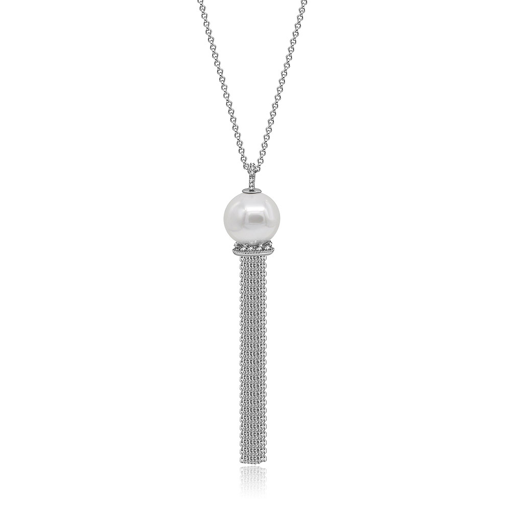 Elegant Rhodium-Plated Necklace with Pearl and Tassel