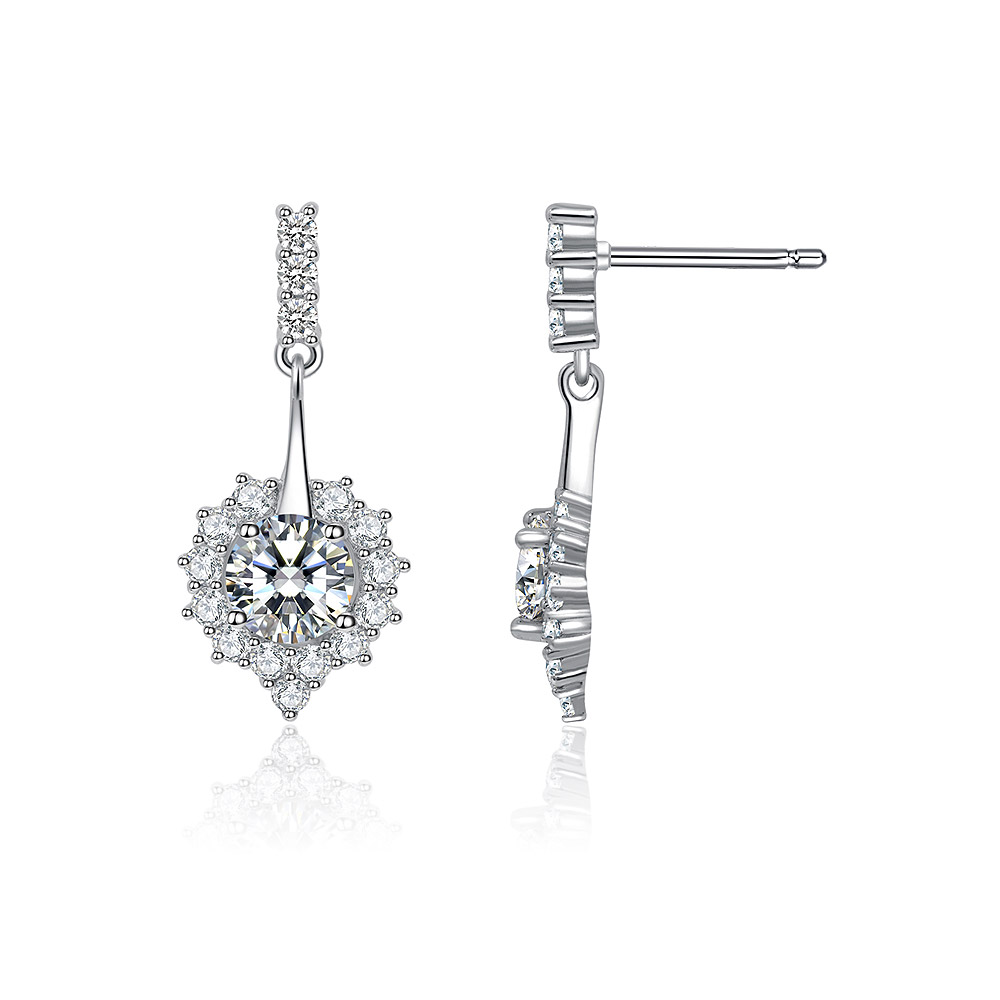 - Side and front profile of the Dangle Sweetheart Stud Earring, highlighting the floral-inspired setting of the cubic zirconia stones.
