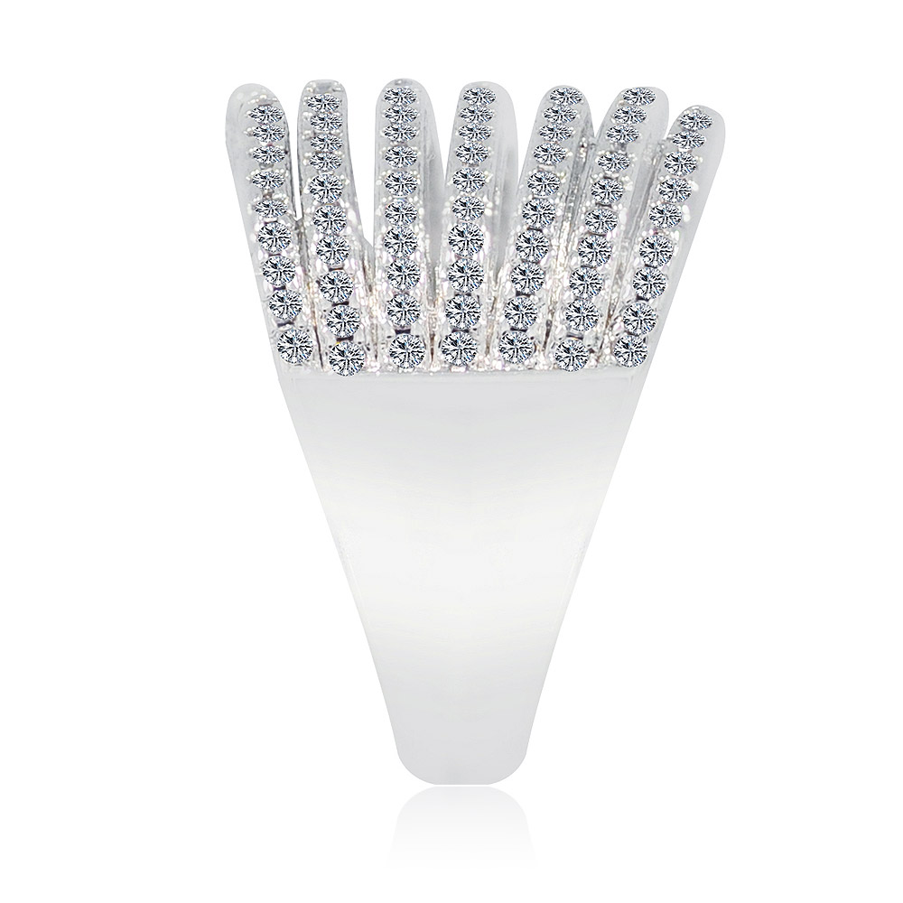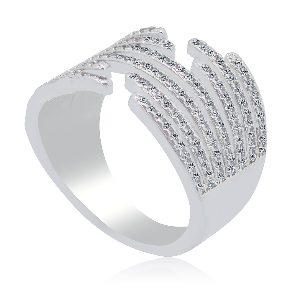Side profile of the Dazzling CZ Ring, highlighting the multi-layered ribbed design and the setting of the cubic zirconia stones.