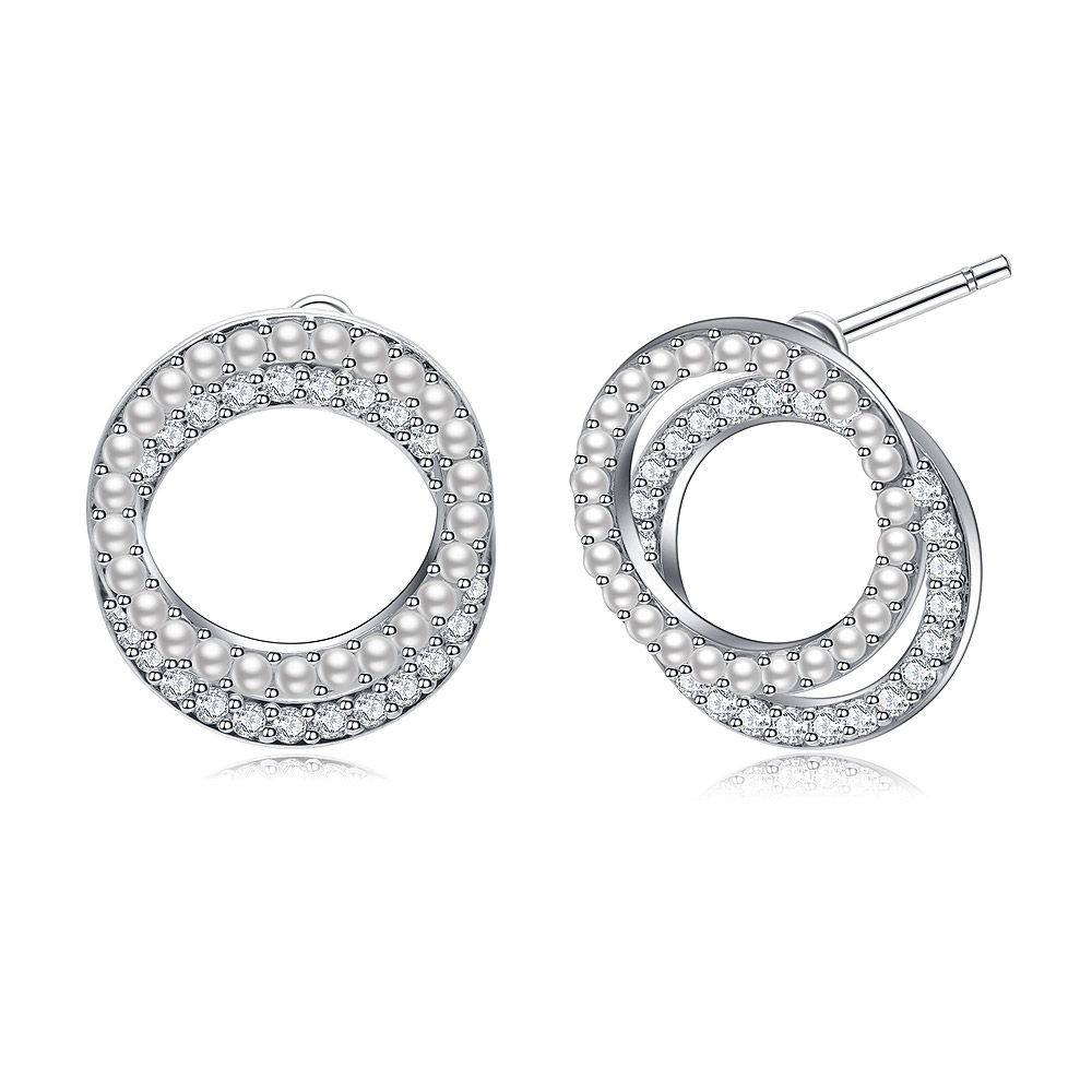 Double Circle Pearl CZ Earrings - Custom Jewelry Manufacturing
