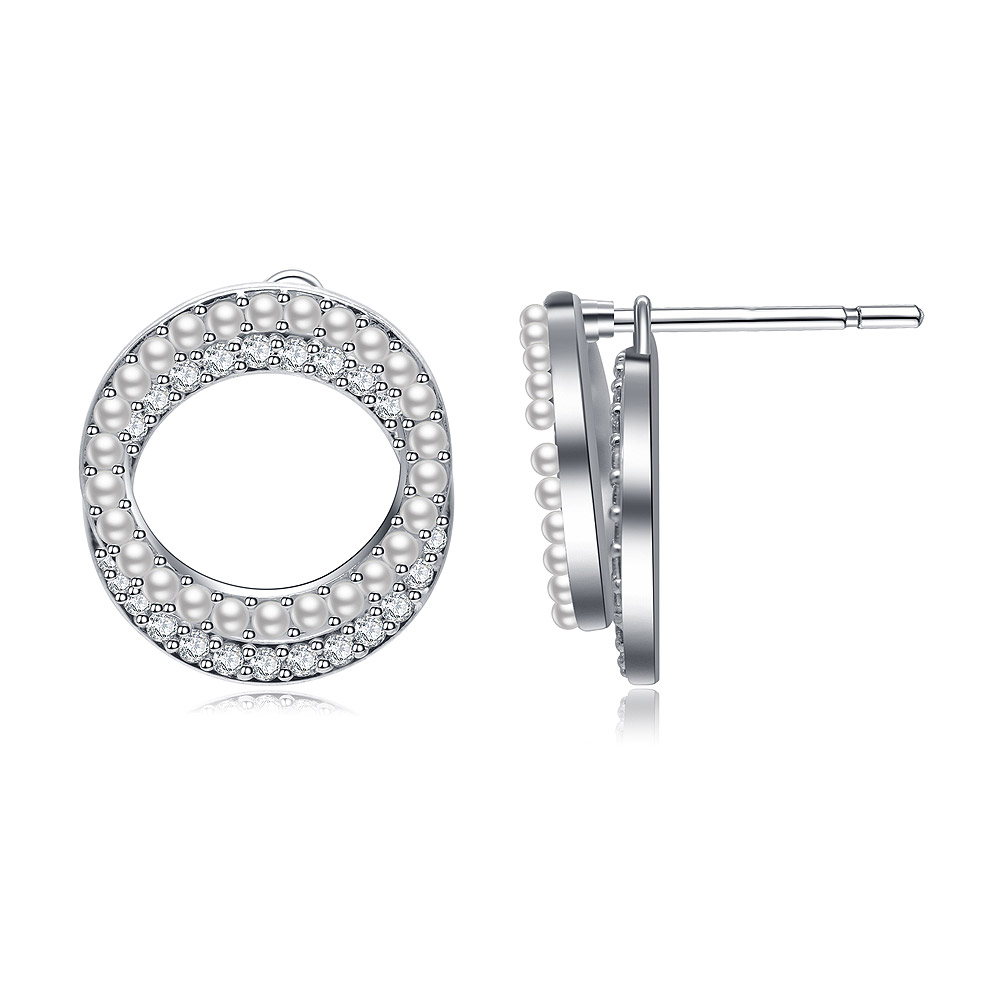 Rhodium Plated Brass Studs with Pearl & Cubic Zirconia
