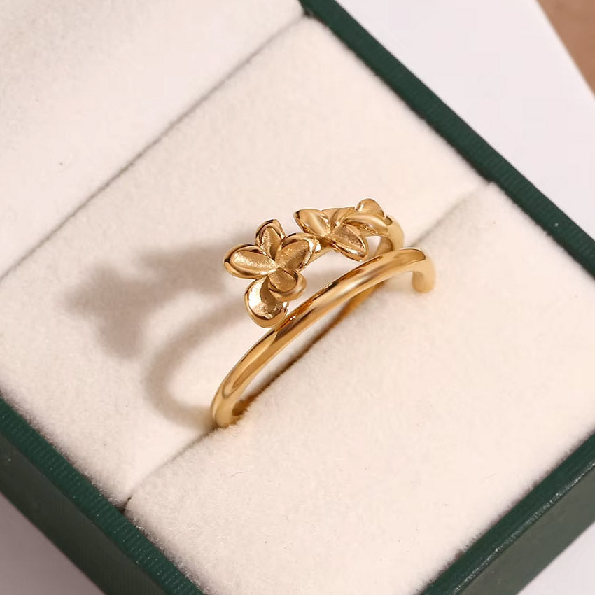 The Double Layer Gold-Plated Adjustable Stainless Steel Flower Finger Ring is a stylish and nature-inspired accessory, perfect for embracing the floral trend of spring and summer. Crafted with precision, this ring features a unique double-layer design adorned with three delicate flowers, exuding elegance and femininity.