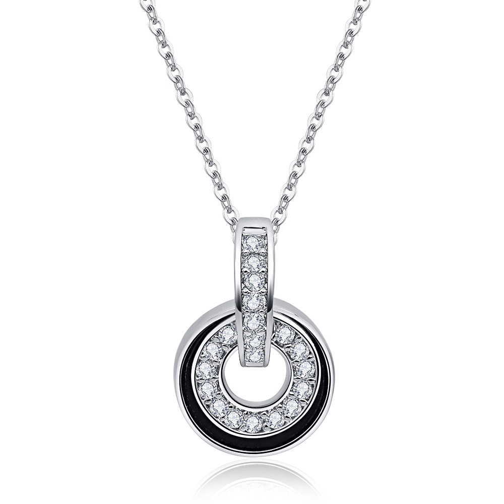 Elegant Cubic Zirconia Double Circle Charm Necklace