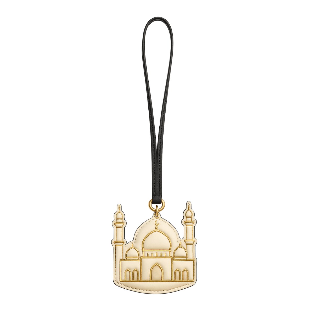 An elegant gold-colored charm designed in the shape of a mosque, reflecting Dubai's rich culture.