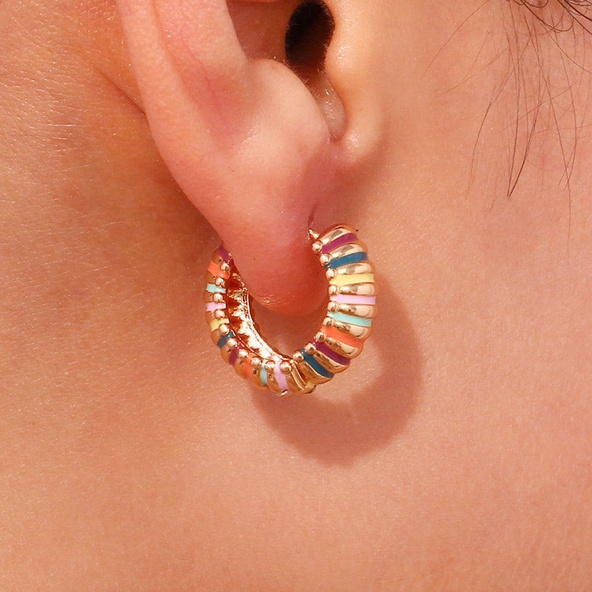 - Product Name: Enamel Rainbow Gold Plated Chunky Hoop Earrings
