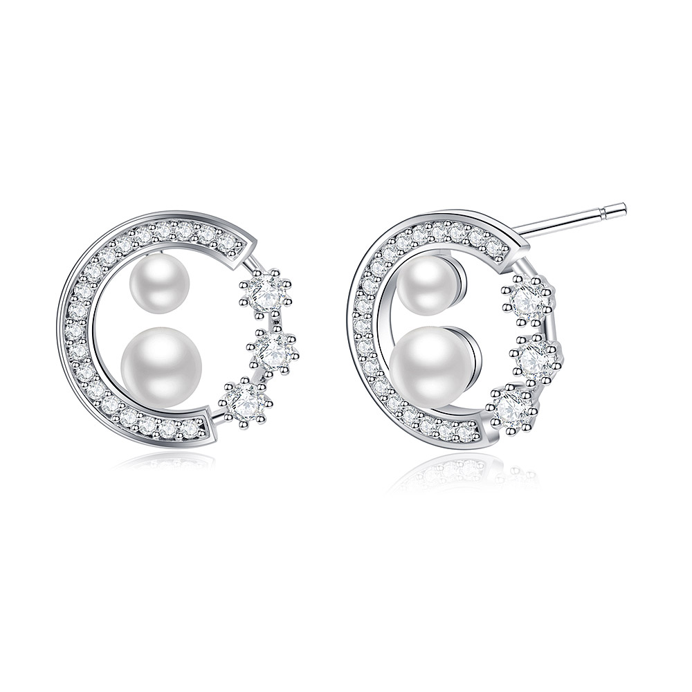 Classic Rhodium-Plated Earrings with CZ and Pearl