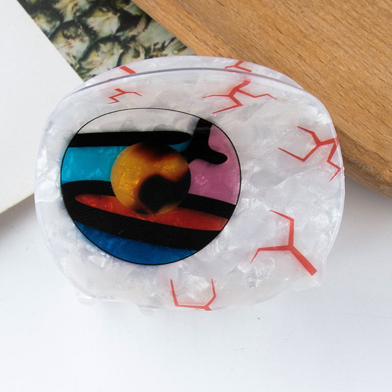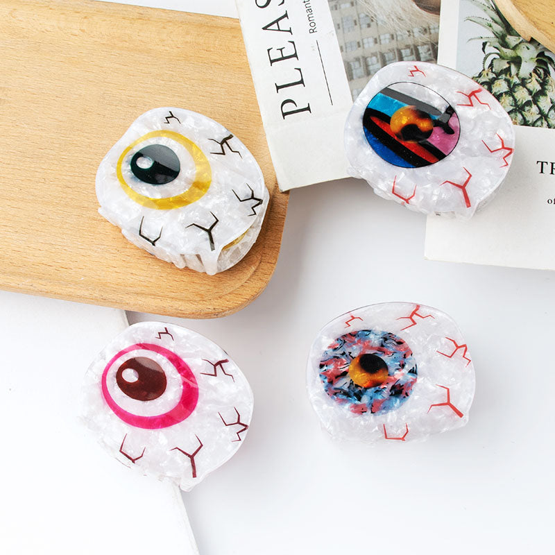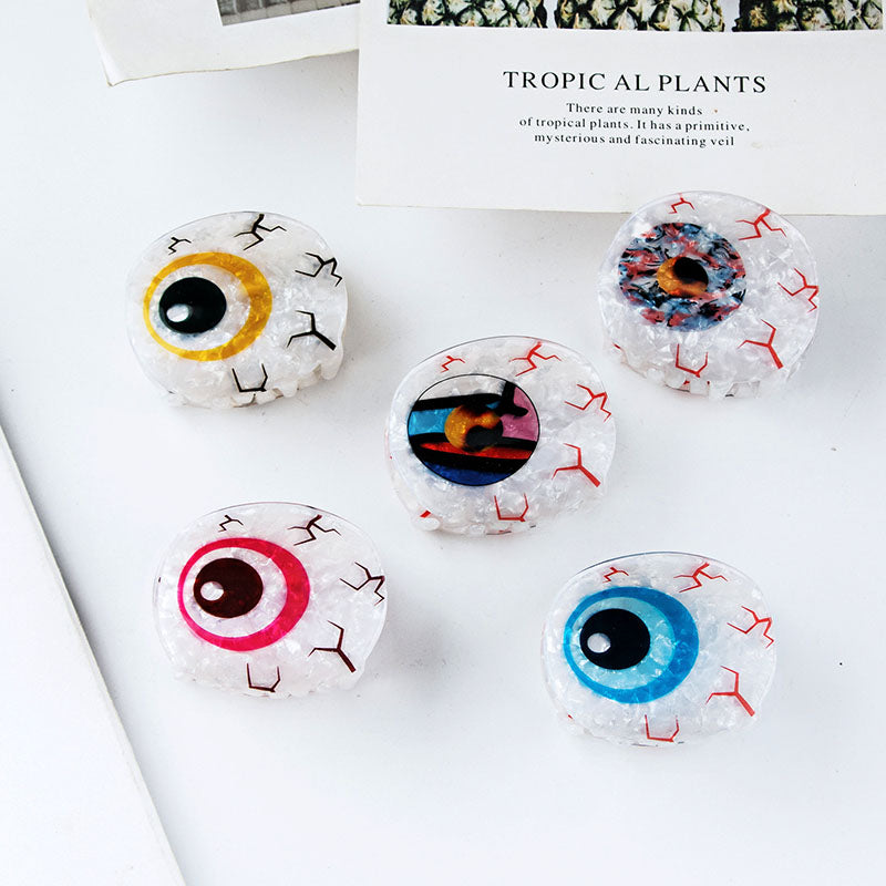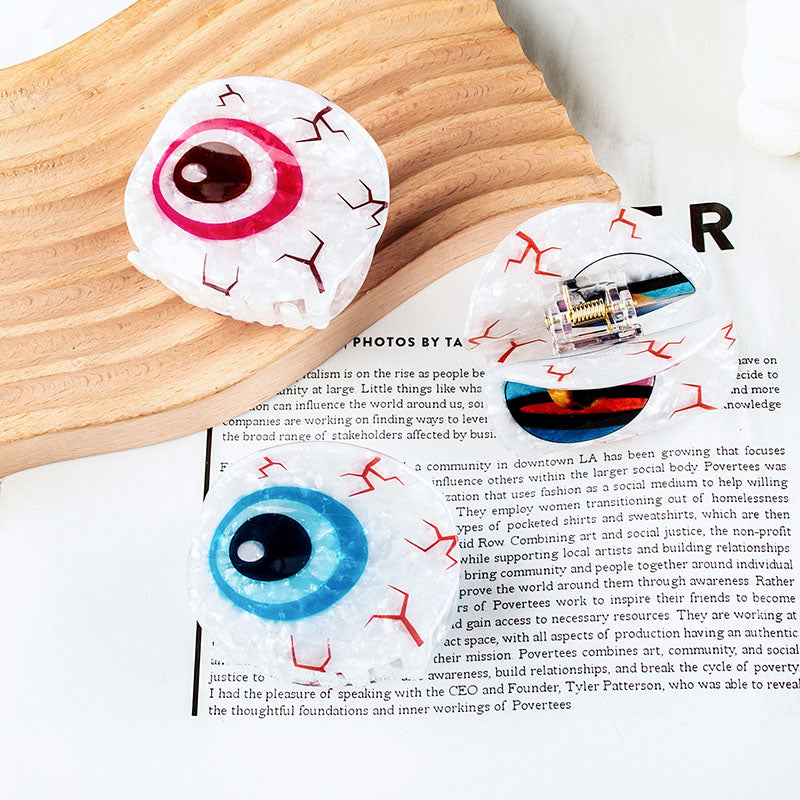 Introducing our distinctive Evil Eye Claw Clip, a chic hair accessory that not only enhances your style but also symbolizes protection and good luck. This unique design is crafted from high-quality acetic acid with a durable plastic base covered in resin, ensuring both beauty and longevity. The eye-catching design makes it an ideal choice for adding a spooky flair to your hairdo for Halloween or a touch of mystery for masquerade balls.