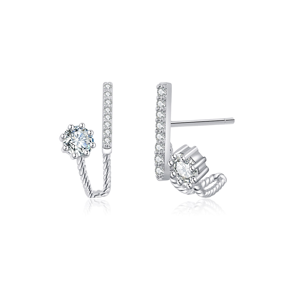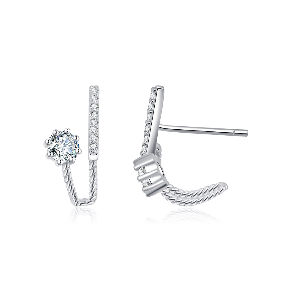 Crafted with precision from high-quality brass, these earrings are plated with lustrous rhodium for a brilliant, long-lasting finish that resists tarnishing. The design features an intricate twisted rope-like detail, complemented by dazzling white cubic zirconia that provides the sparkle of real diamonds without the high cost. The secure post closure ensures they stay comfortably in place all day long.