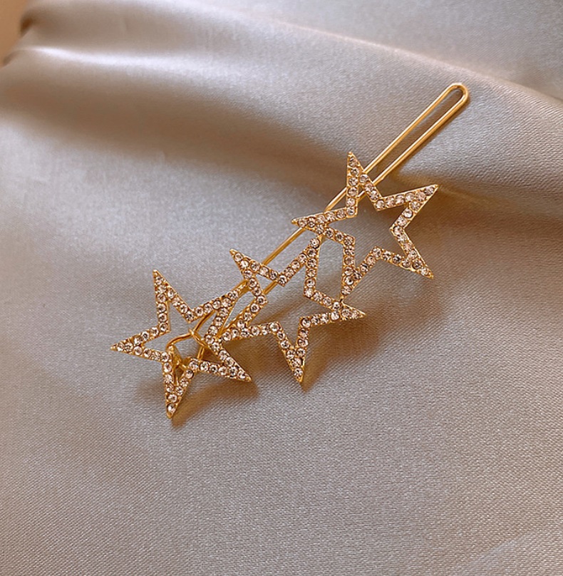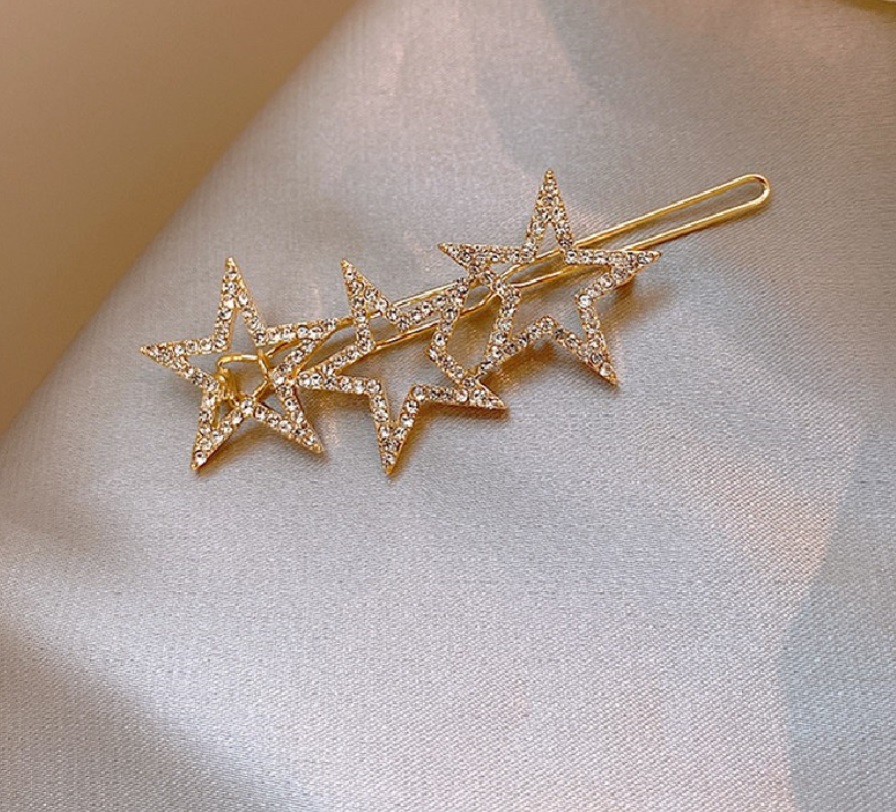 Elevate your hairstyle with our Triple Star Crystal Bobby Pins. These lightweight and eye-catching hair accessories are meticulously designed for weddings, proms, and other special events. Featuring a brilliant gold plating and adorned with sparkling crystals, they add a touch of modern femininity to any look. Simple yet stunning, these pins are a must-have for complementing most hairstyles. As a trusted supplier with over 30 years of experience, JR Fashion Accessories offers high-quality fashion jewelry and hair accessories with options for bulk orders.