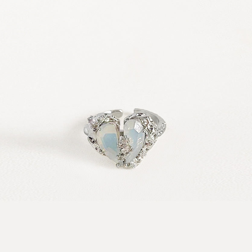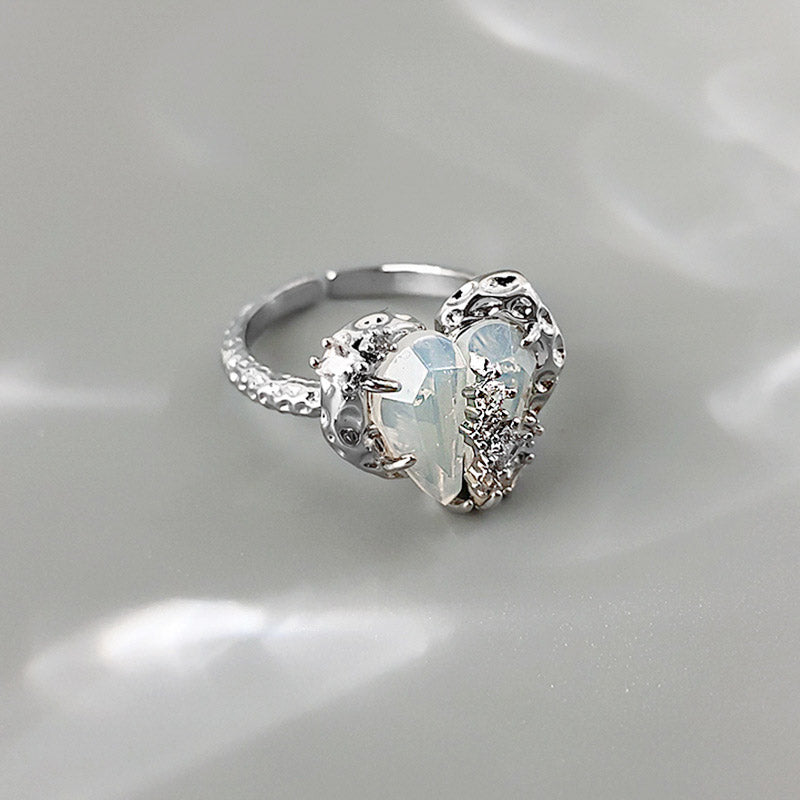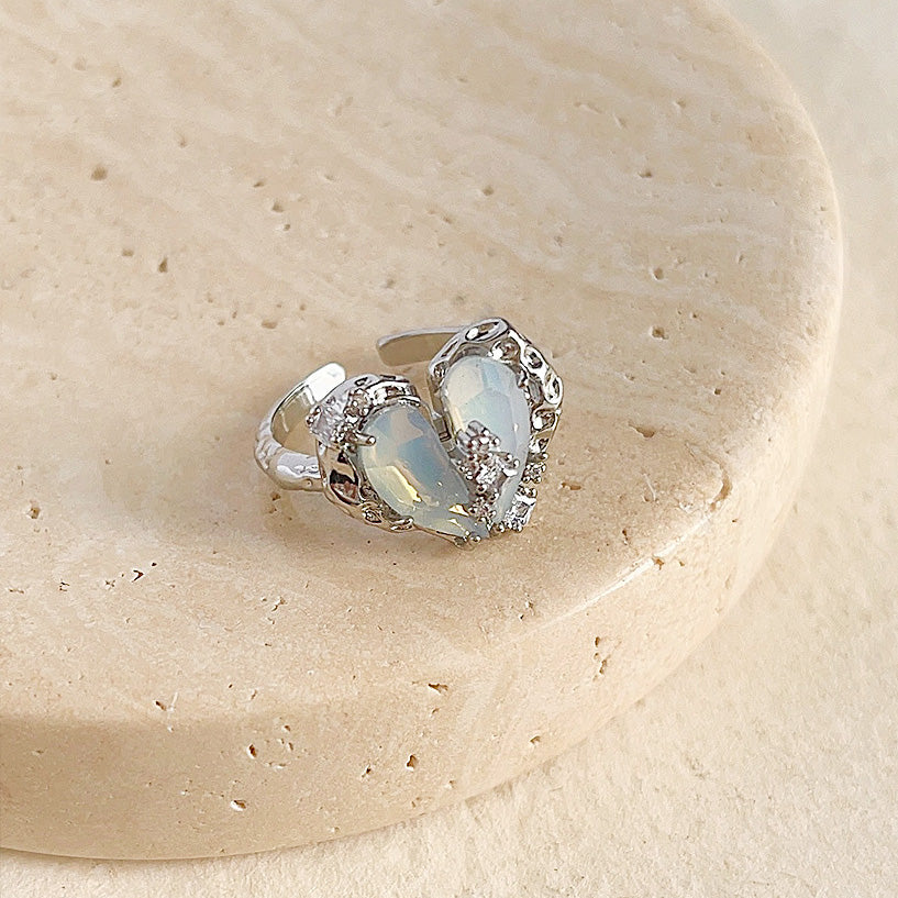 This exquisite set of five adjustable rings is a testament to modern, romantic design. Each piece is crafted from high-quality brass and finished with a lustrous silver plating. The rings are adorned with carefully set crystals, forming beautiful heart shapes that symbolize love and affection. The open-back, adjustable design makes them a versatile choice suitable for various finger sizes.
