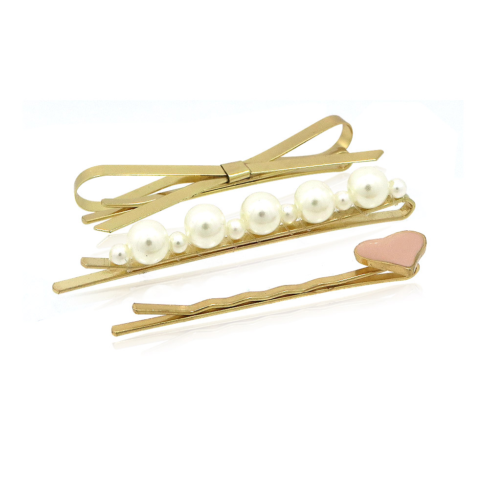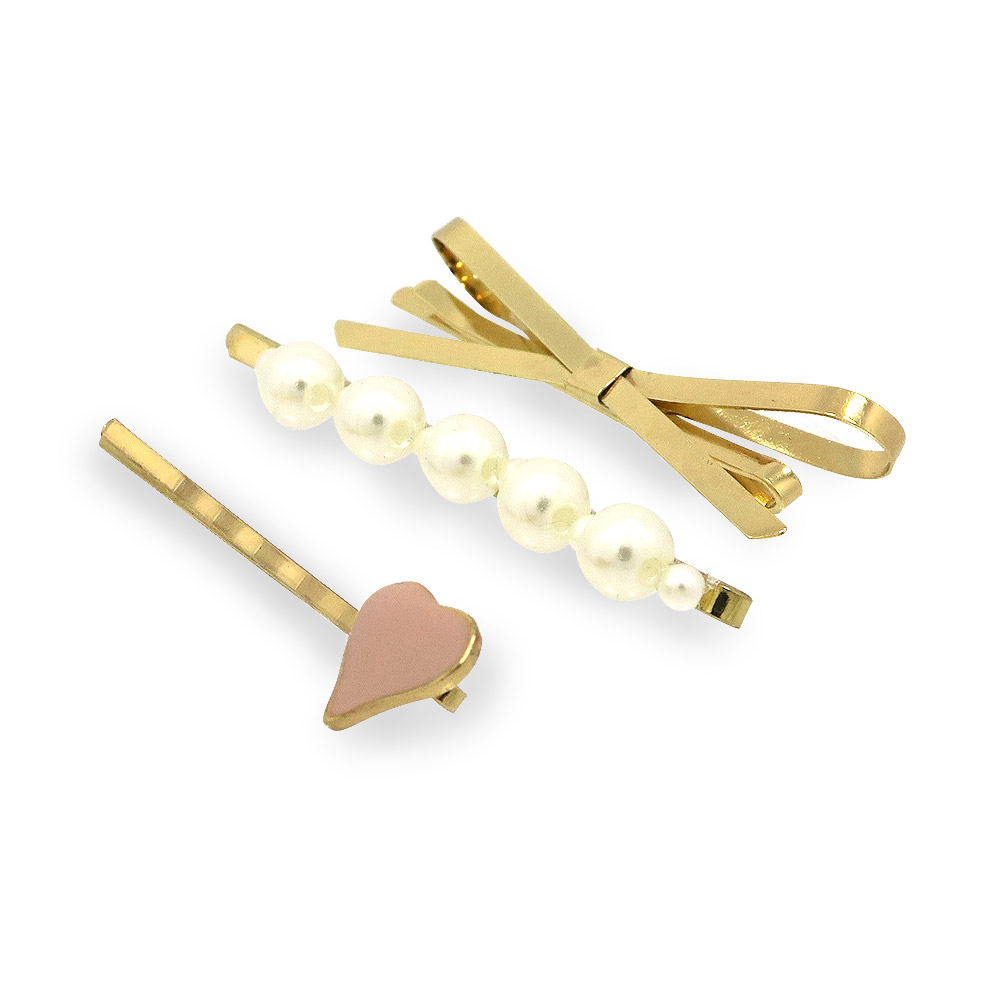 Faux Pearl Metal Heart Hair Clip Set of 3 - Custom Jewelry Manufacturing