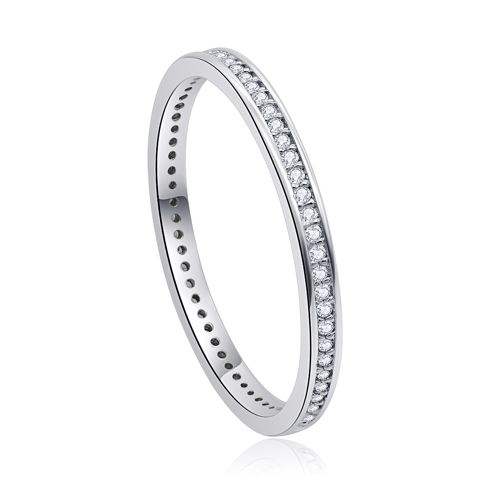 - Side view of the Fine Eternity Band Ring, highlighting the continuous row of sparkling cubic zirconia stones.
