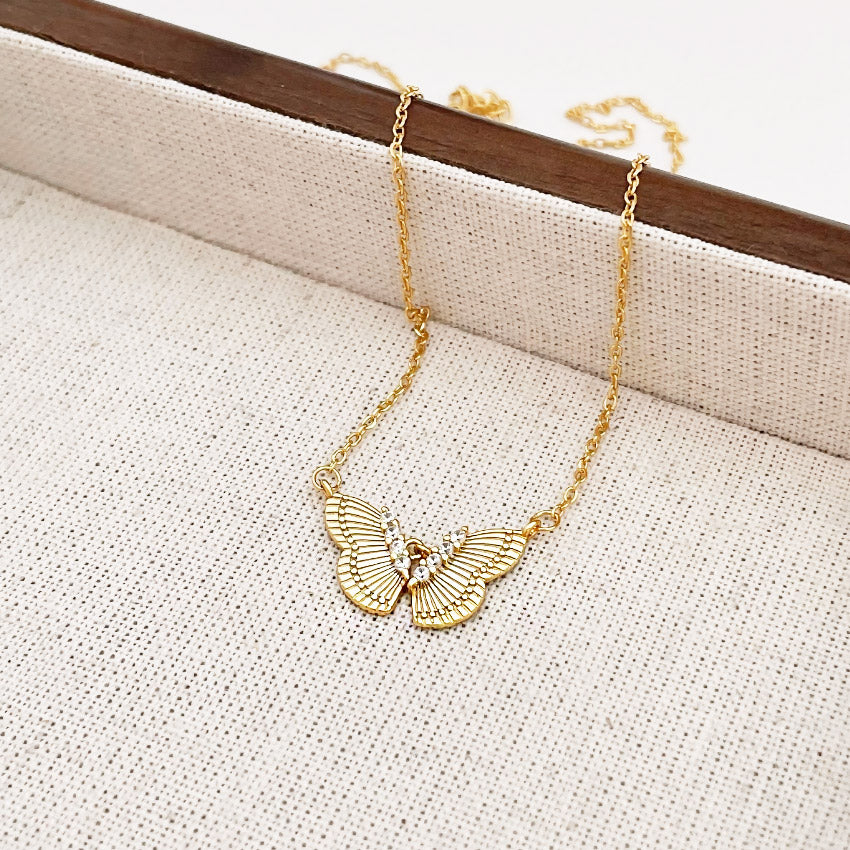 - A clear product shot of the gold butterfly necklace, showing its elegant design.