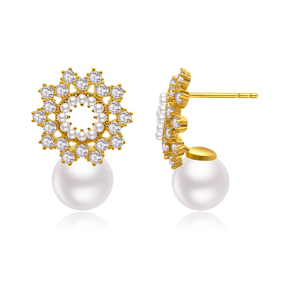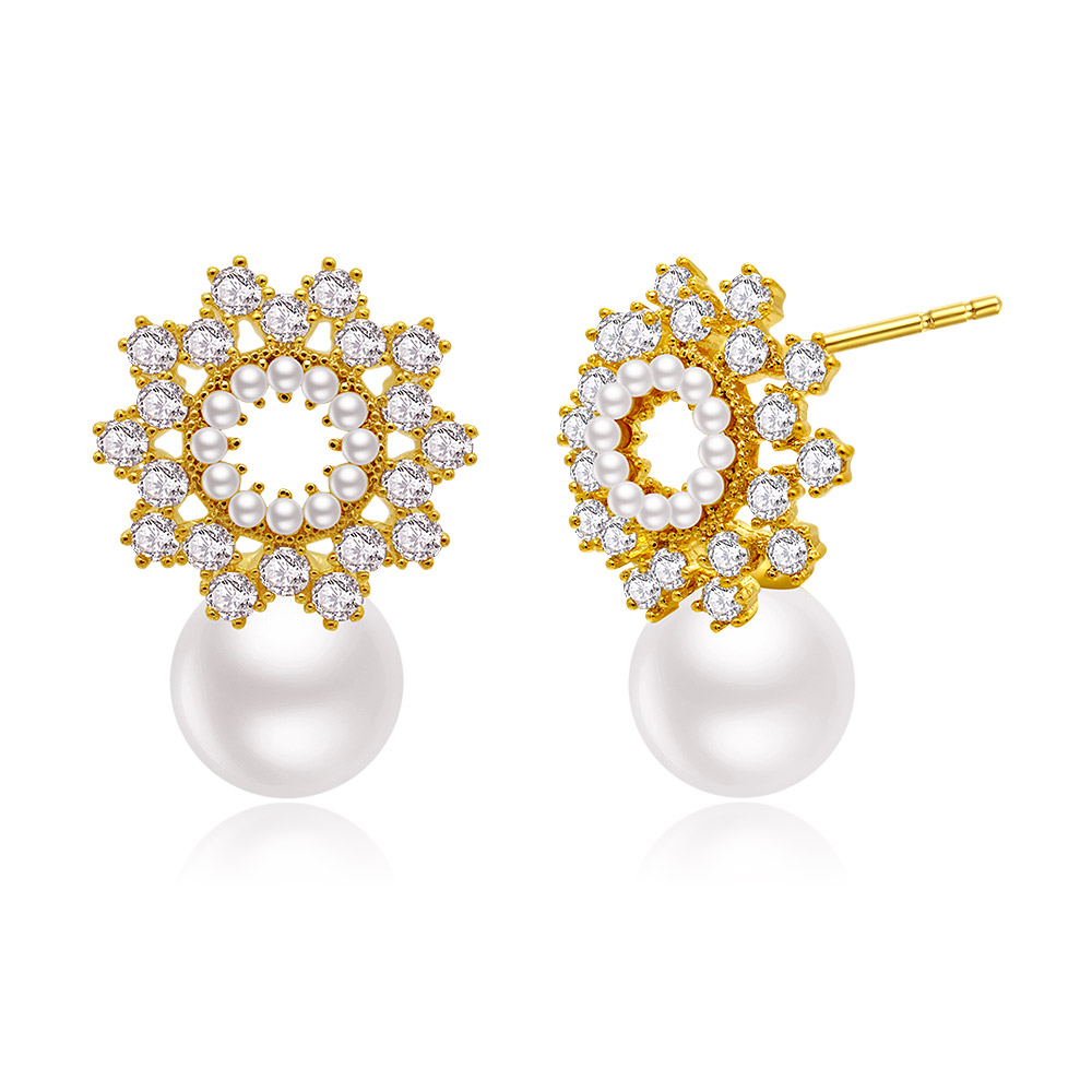 Gold-Plated Brass Studs with Pearl & CZ Accents