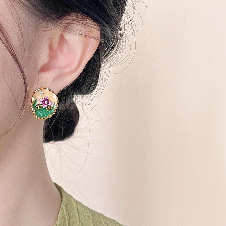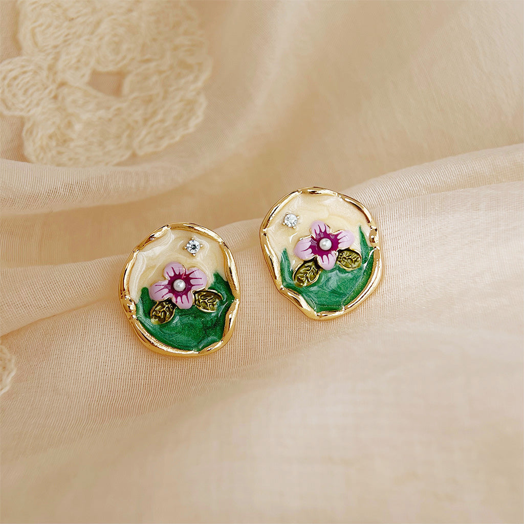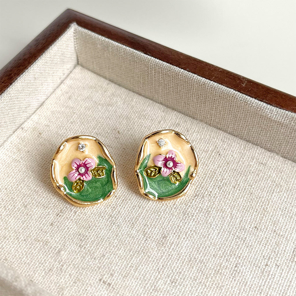 - Product Name: Flower Painting 14k Gold Plated Enamel Stud Earrings (Set of 5 Pairs)