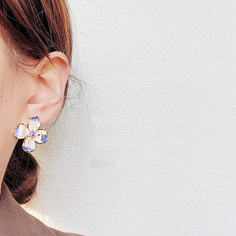 - Product Name: French Style 14k Gold Enamel 4-Petal Flower Stud Earrings (Set of 5)