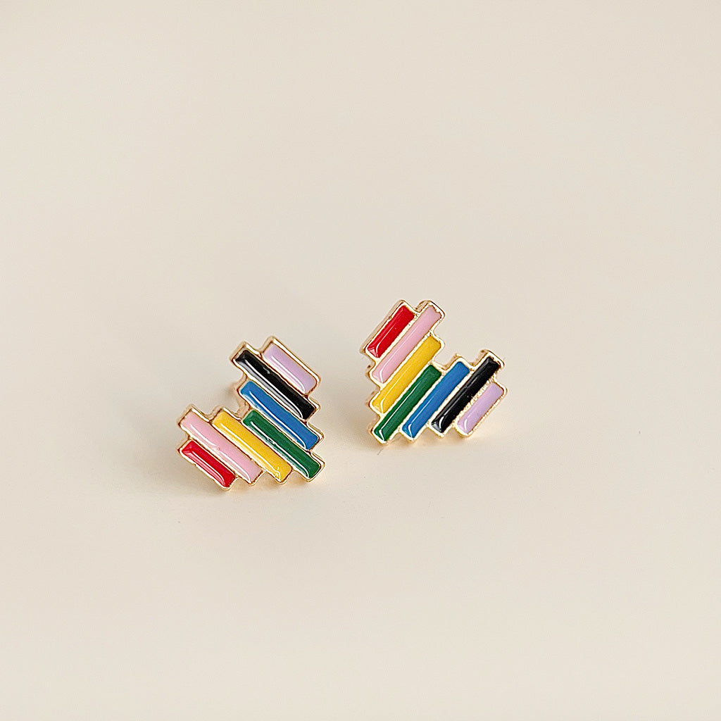Another unique rainbow pattern from the 5-pair heart stud earring collection.