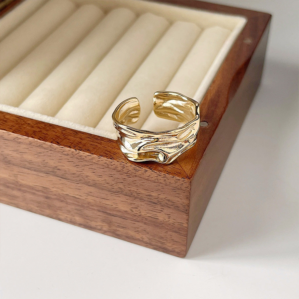 Elevate your accessory collection with our Geometrical Polish Irregular Pleats Open Rings. This set of five rings is designed for the modern individual who appreciates unique, artistic jewelry. Each ring features a distinct hammered and pleated texture, creating a captivating play of light and shadow. The open-cuff design is not only stylish but also allows for easy adjustment, ensuring a perfect and comfortable fit for everyone.