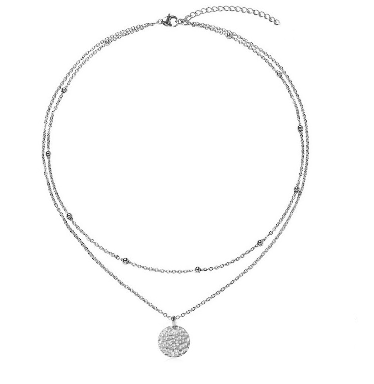 - Silver-toned version of the charm necklace, highlighting the polished finish.