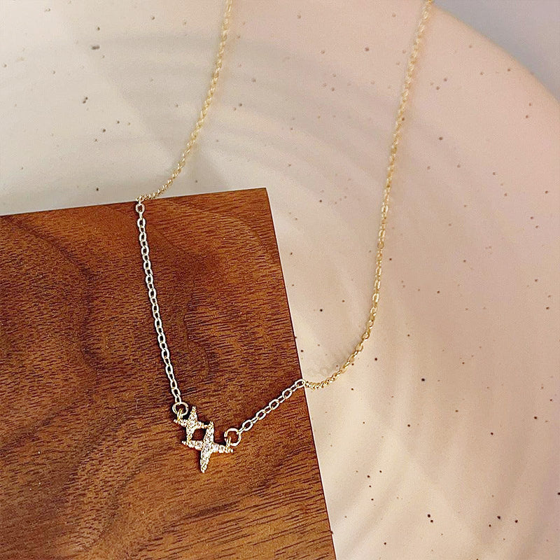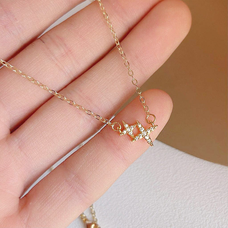 - Product Name: Gold Plated Zirconia Double Star Collar Necklaces