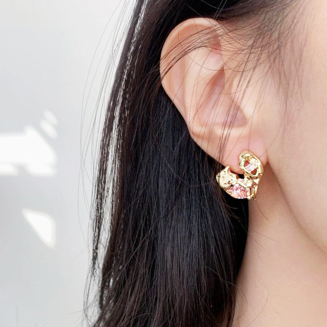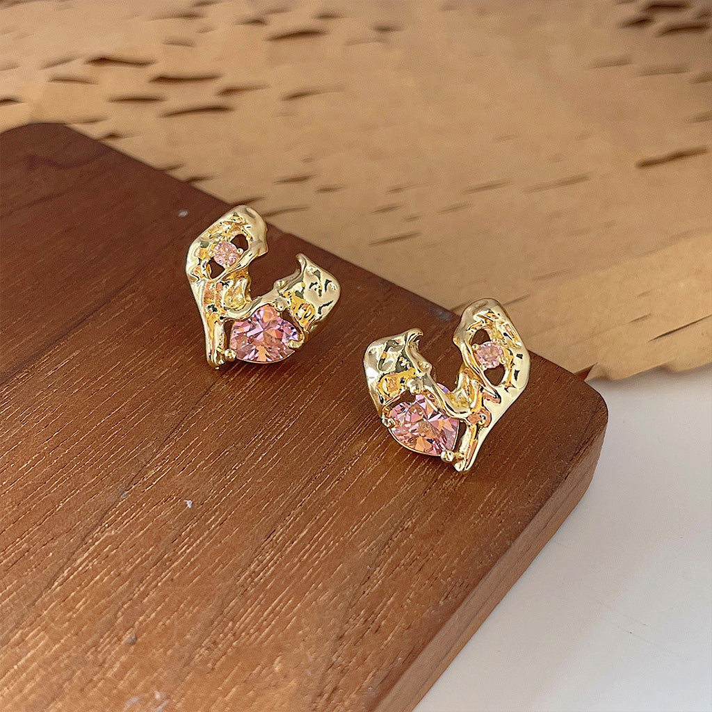 - Product Name: Gold Plated Pink Crystal Irregular Heart Stud Earrings (5 Pairs Set)
