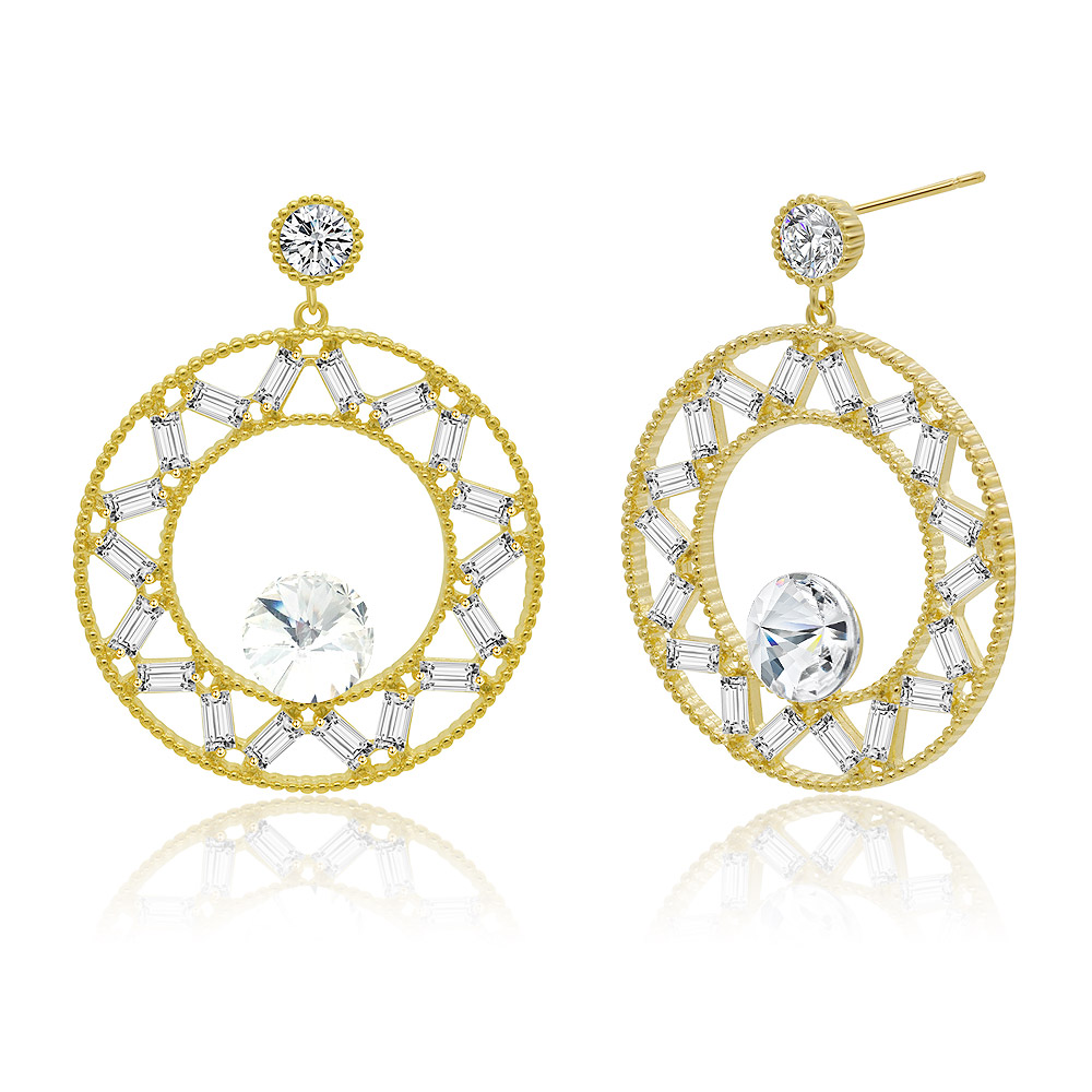 Gold Plated Round Dangle Chandelier Earrings - Custom Jewelry Manufacturing
