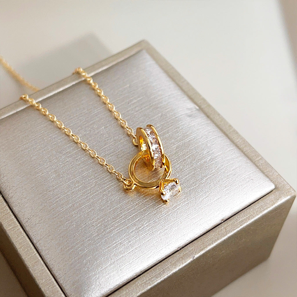 The intricate design of the interlocking circles is both contemporary and timeless. Crafted from durable brass and finished with a high-quality gold plating, these necklaces offer a luxurious look and feel. The brilliant zircon stones are carefully set to catch the light from every angle, ensuring you'll shine wherever you go.