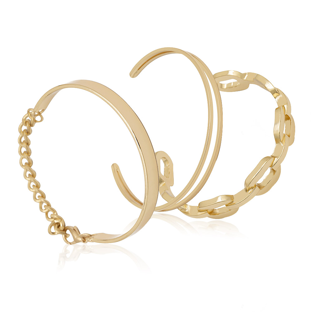 Style Number JRG-001 Product Type Jewelry, Bracelets Bracelet Type Bangle, Cuff Sold By Unit Each (Set of 3) Collection Polished Material Brass Plating / Color Gold Closure Semi-adjustable Dimensions Inner Diameter: 5.3 cm ~ 6.0 cm