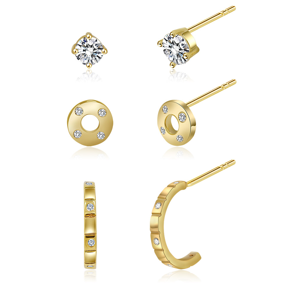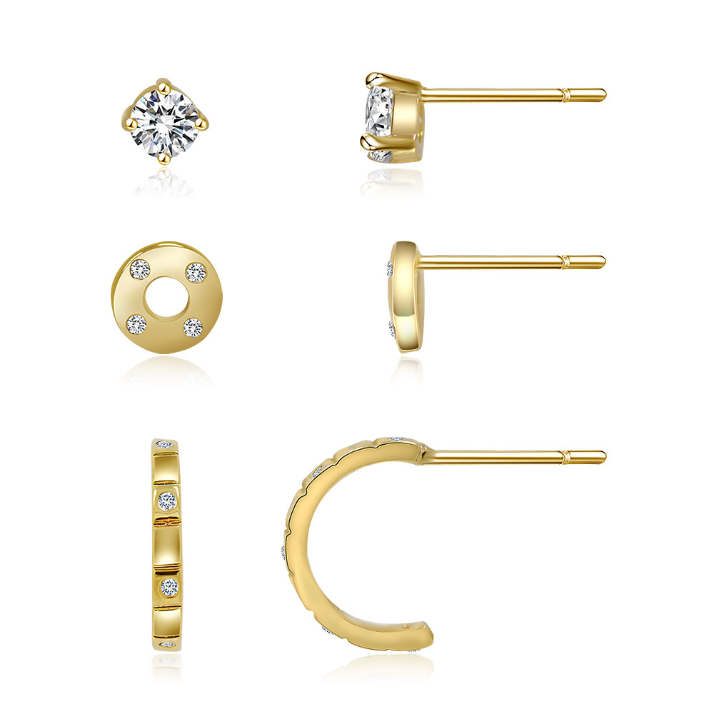 Gold Tone Combo 3 in 1 Stud Earrings - Custom Jewelry Manufacturing