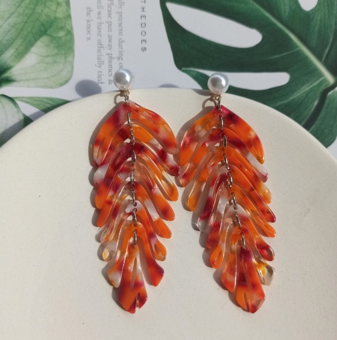 A warm-toned variation of the leaf acrylic earrings, featuring a beautiful orange-to-red gradient.