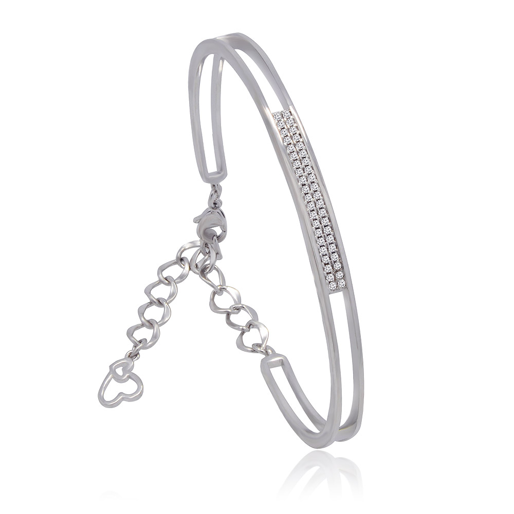 Rhodium-Plated Brass Bangle with Pave-Set Cubic Zirconia