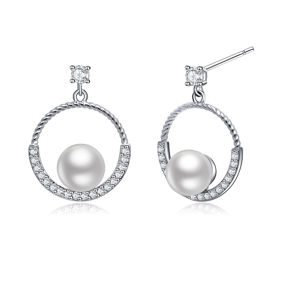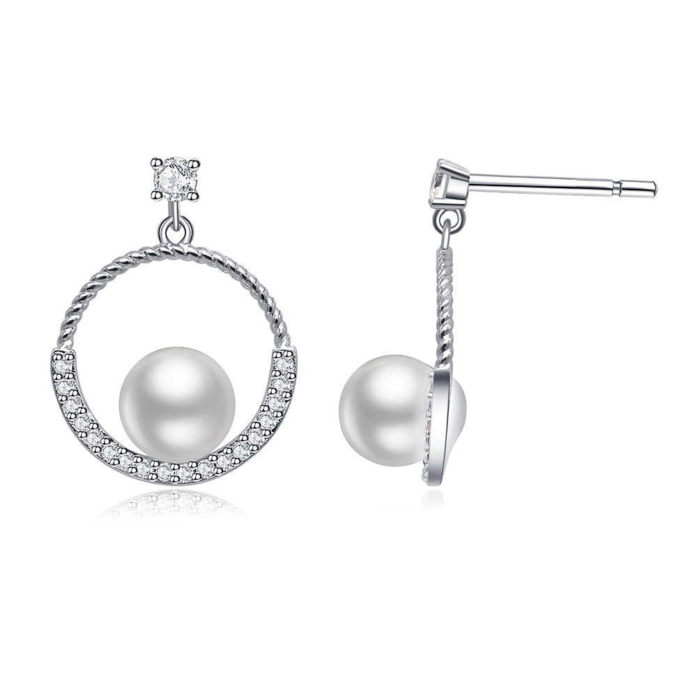 Rhodium Plated Brass Earrings with Cubic Zirconia and Pearl