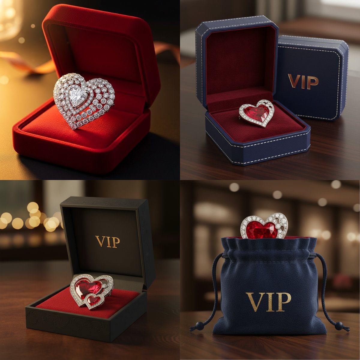 A collection of luxury heart-shaped jewelry pieces, ideal for VIP clients and special occasions