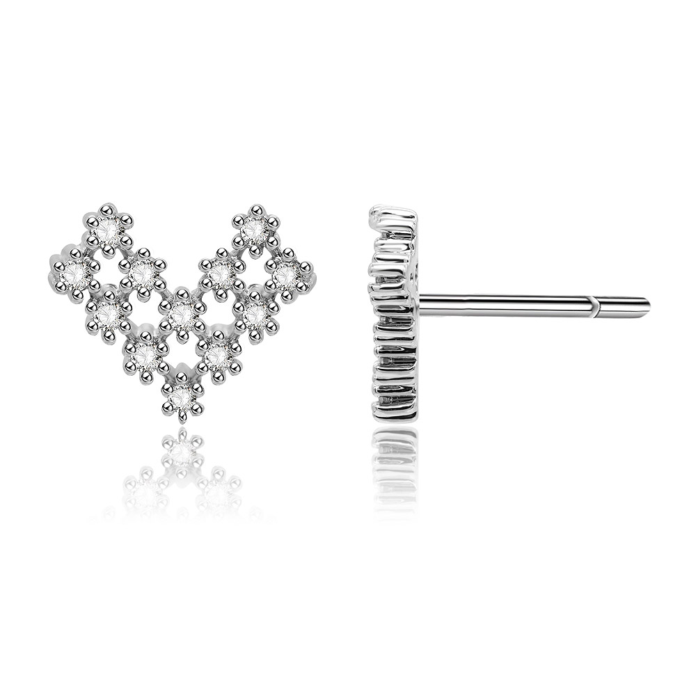 Discover our elegant Heart Cluster Stud Earrings, a timeless classic perfect for any jewelry collection. Crafted from rhodium-plated brass and adorned with sparkling cubic zirconia stones, these earrings feature a stunning modern design. They make an ideal gift for a special someone or a beautiful treat for yourself. As part of the JR Fashion Accessories collection, they represent quality craftsmanship and sophisticated style, available for wholesale and customization.