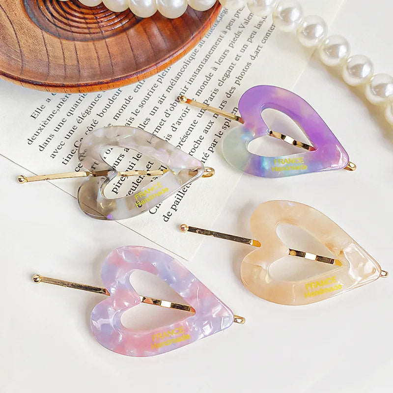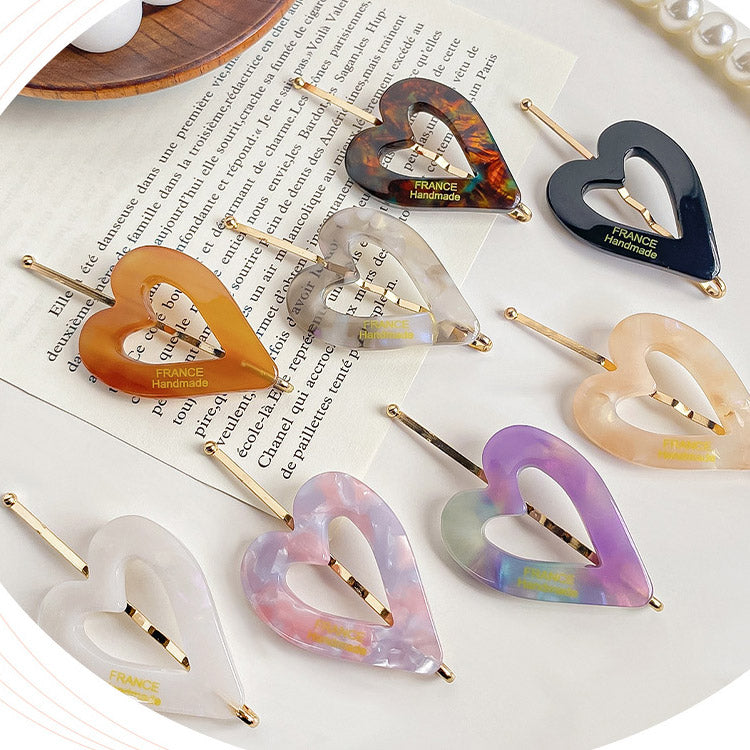- Product Name: Heart-Shaped Acetate Hair Bobby Pins (Set of 5)