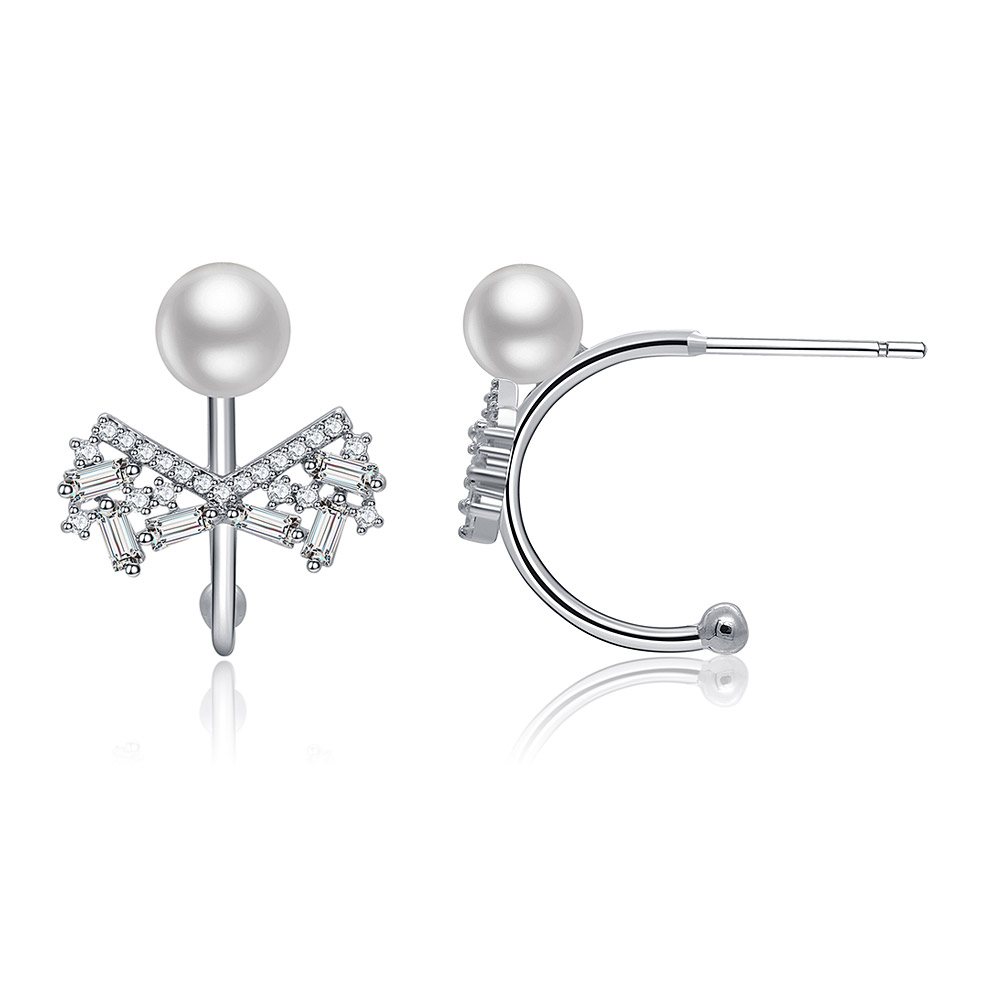 Hook Pearl CZ Bow Earrings