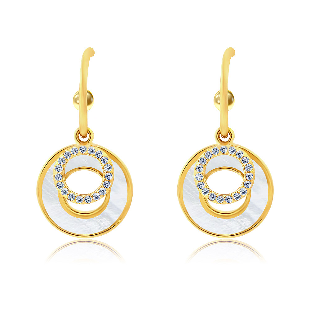 Elegant Gold-Plated Shell & Cubic Zirconia Earrings