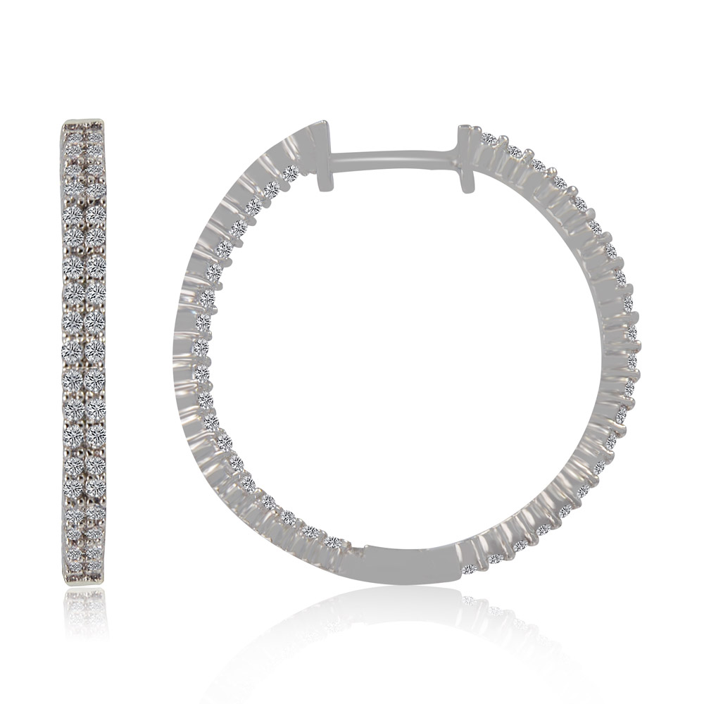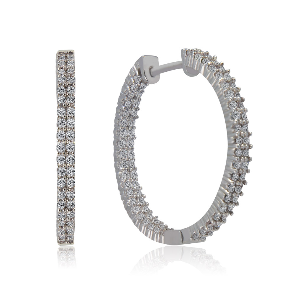 Rhodium Plated Brass Hoop Earrings with Cubic Zirconia