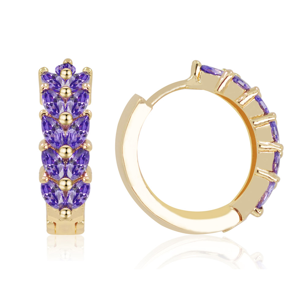 The Huggie Purple Hoops (Style: BEQ05-G-Z-00400) are a stunning example of modern elegance. Crafted from brass with a lustrous gold plating, these earrings are designed for both beauty and durability. Each hoop is meticulously set with vibrant violet cubic zirconia, offering the brilliance of real gemstones at an affordable price. The secure post and clip closure makes them perfect for everyday wear or special occasions.