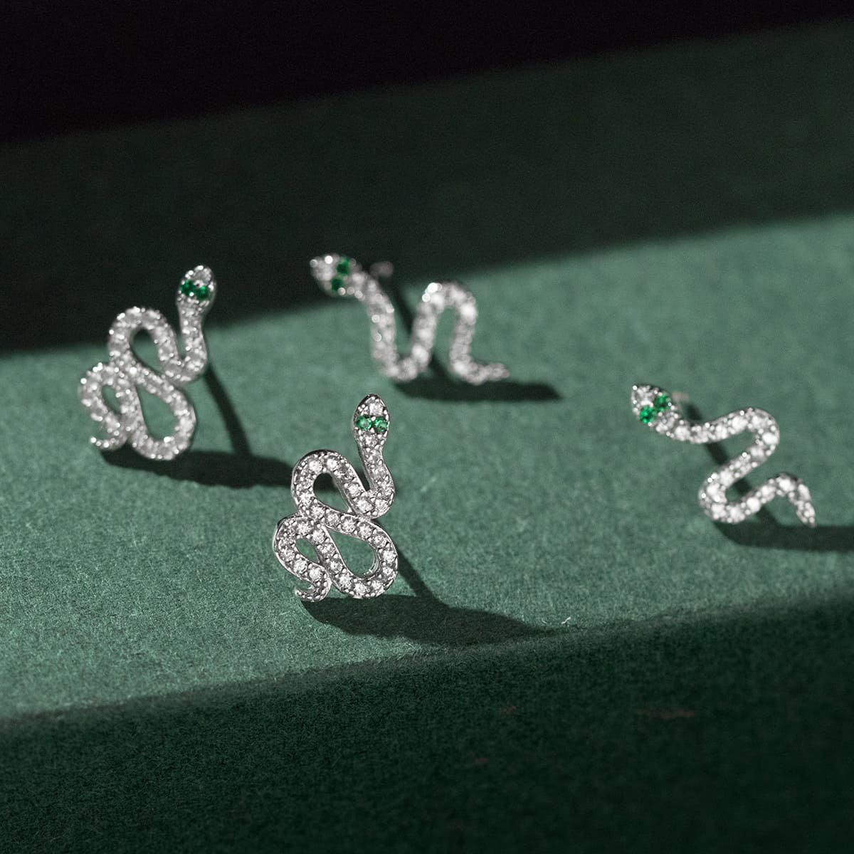 - Bold snake-shaped stud design with CZ diamond accents that add a subtle sparkle and edgy style.
