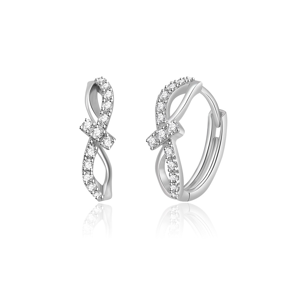 Side view of the Interlock CZ Huggie Earrings showing the infinity symbol design and gemstone setting.