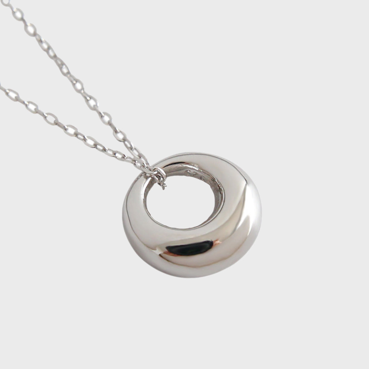 This necklace set reflects the essence of minimalist jewelry with a modern geometric round pendant that appeals to fans of Korean pop style and contemporary fashion. The smooth, doughnut-like shape creates a bold yet refined statement that complements both casual and professional outfits. Its simplicity and elegance make it a bestseller among wholesale 925 silver buyers looking for versatile, stylish pieces.