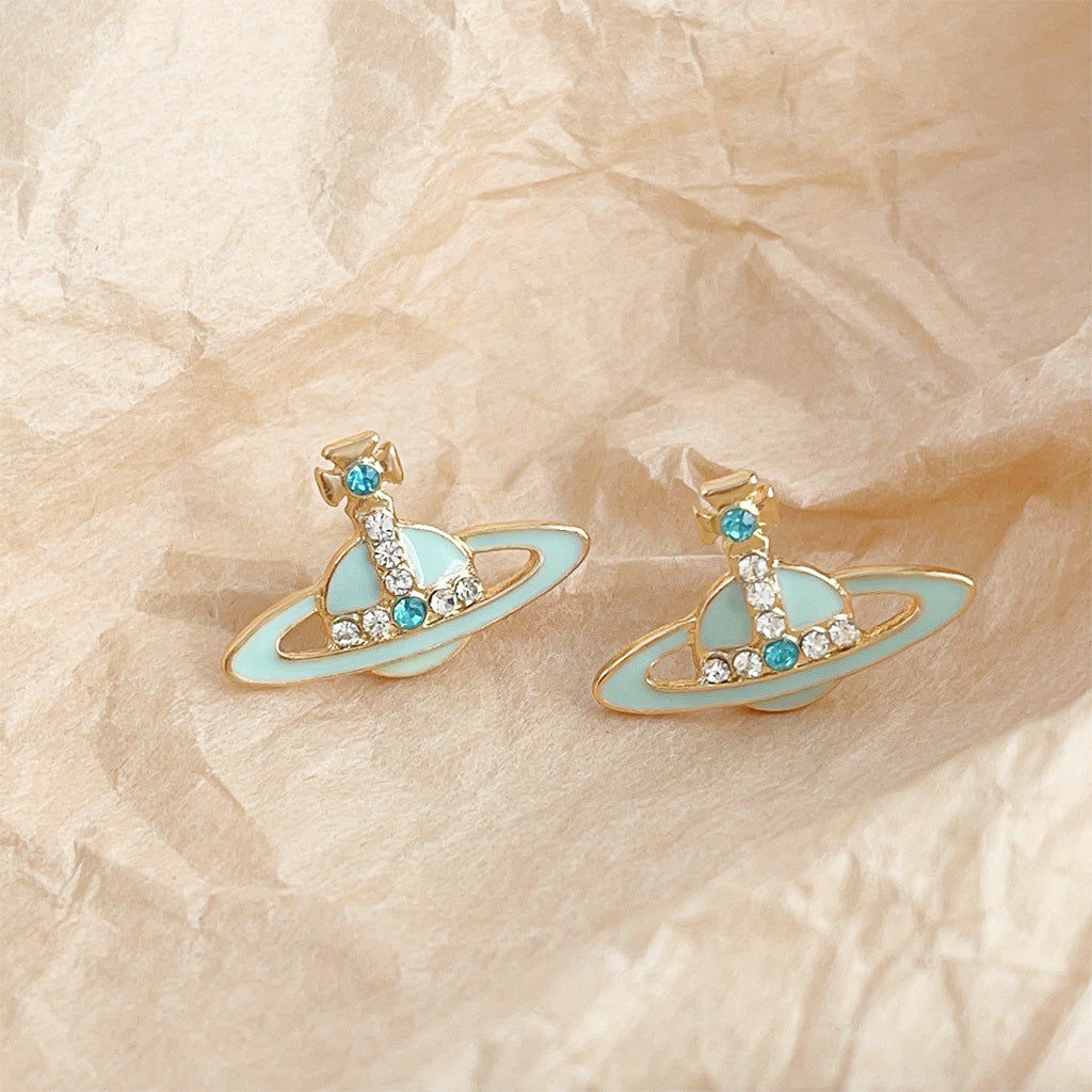 - Product Type: Stud EarringsDesign: Planet with Rings (Saturn-inspired)Quantity: Set of 5 pairsBase Material: BrassPlating: Gold-toneEmbellishments: Light Blue Enamel, RhinestonesStyle: Fashion, Celestial, WhimsicalIntended for: Wholesale, Retail, Custom Jewelry Lines