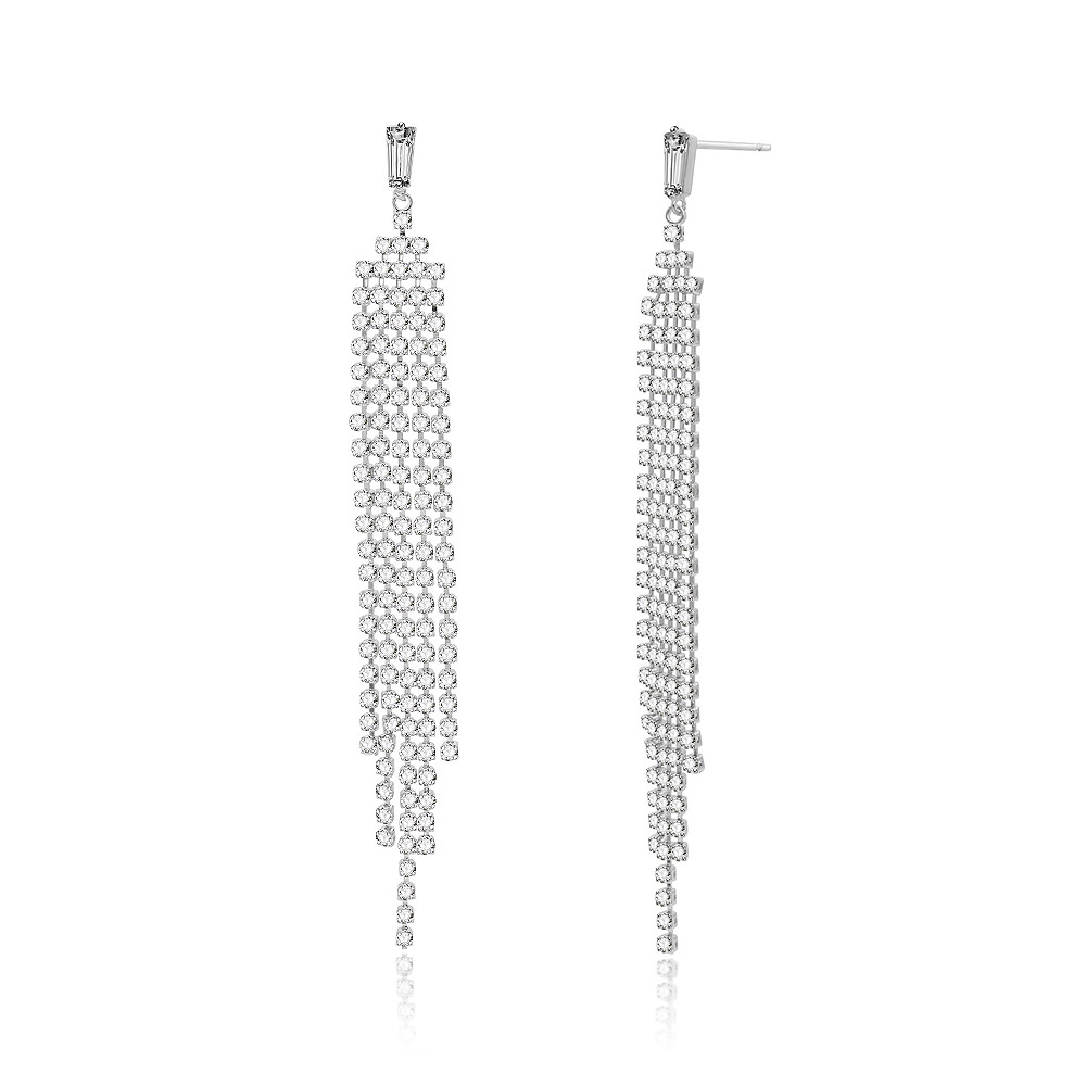 Discover elegance with these stunning Long CZ Linear Chandelier Earrings. Featuring a cascade of brilliant cubic zirconia stones set in a rhodium-plated brass base, these 85x10mm drop earrings add a touch of glamour to any look. Perfect for wholesale, they offer sophisticated style and customization options for your brand.