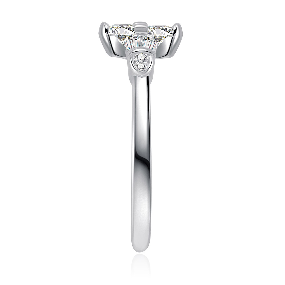 - Detailed side view of the Marquise Cut Center Quad Baguettes Ring, showcasing the intricate setting of the stones.