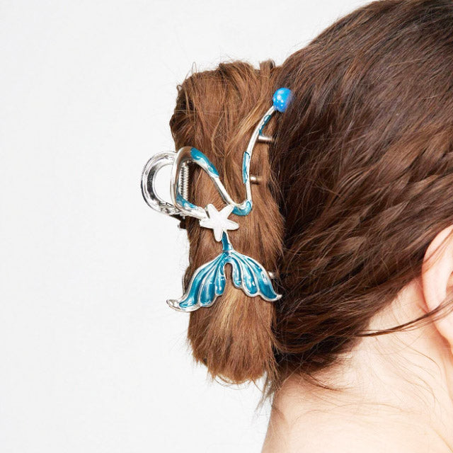 Unleash your inner siren with our stunning Metal Alloy Mermaid Tail Hair Clips. These large, decorative clips are designed to make a statement, featuring intricate details and a whimsical mermaid-tail shape that captures the magic of the ocean. Perfect for all hair types, they provide a secure hold while adding a touch of fantasy to your everyday look or special occasion hairstyle.