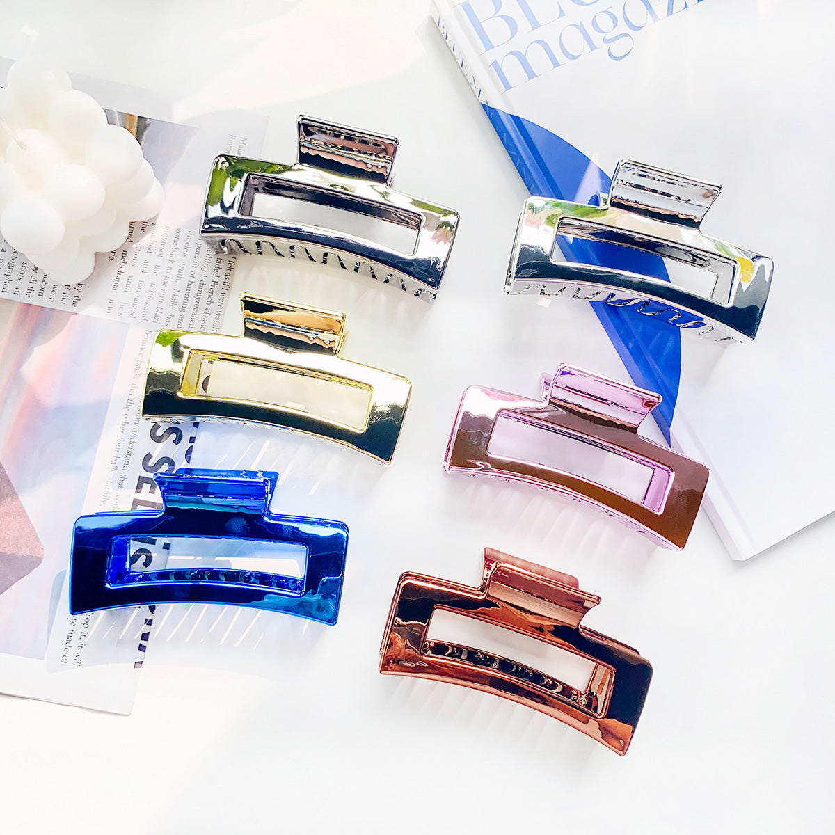 Elevate your hairstyle with our Metal Hair Grip Hollow Square Banana Claw Clips. This set of five durable metal clips offers a strong and secure hold for all hair types. Featuring a modern hollow square design, these clips are both functional and fashionable. Available in a variety of stunning metallic finishes, they are perfect for creating effortless updos, securing ponytails, or adding a chic touch to any look. Ideal for daily wear or special occasions, these versatile hair accessories combine style and practicality.